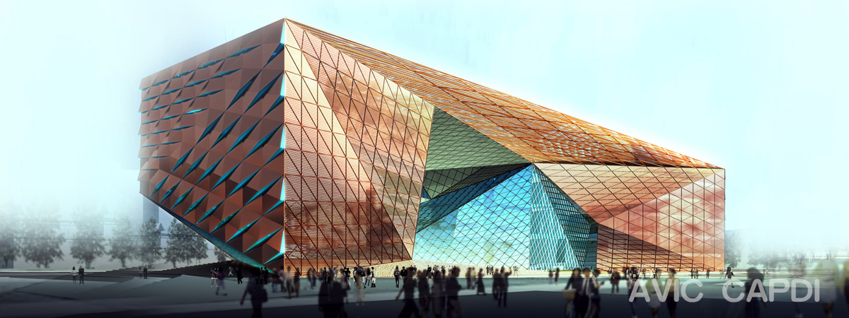 “金鑲鉆”的新成都市立博物館面積為7.2萬平方米,將覆蓋天府廣場的整個西邊角。建筑外圍是一層堅固的銅合金板,包圍在一層網格狀的透明“面紗”之外,使得外層有一種深金色的色彩?!暗搅送砩希W格會更加透明,把金色的光芒傳出去,為四川傳統的皮影戲投下背景。” 建筑內層用各種切口和空洞來界定,大塊玻璃建造的南立面將光線和景觀帶入到內庭。